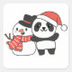 Pegatina Cuadrada Panda Con Snowman En Invierno Para Navidades