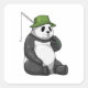 Pegatina Cuadrada Panda en la pesca con barra de pesca