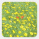 Ilustracion acuático con dos amapolas rojas y flores amarillas en el prado