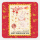Pegatina Cuadrada Papel de oro 2023 Conejo Chino Año Nuevo Rojo