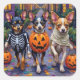 Pegatina Cuadrada Papillon Perros trick-o-Treating Halloween
