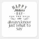 Feliz Día de la Madre para los que siempre saben qué decir Este diseño basado en texto celebra el increíble impacto que las madres y las figuras de la madre tienen en nuestras vidas. Con su simple pero poderoso mensaje, este diseño es perfecto para mostrar aprecio a las mujeres especiales en nuestras vidas. La tipografía elegante y el diseño minimalista hacen que sea versátil para cualquier ocasión o conjunto. Muestra tu amor este Día de la Madre con este diseño sincero, o dáselo a las increíbles madres de tu vida.
