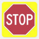 Pare la muestra basada en el manual en los dispositivos uniformes del control de tráfico en un fondo amarillo, en un precio de saldo.