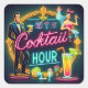 Pegatina Cuadrada Pareja de la hora de cócteles del Rótulo Neon de M