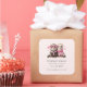Pegatinas de negocios con un lindo ilustracion. Un par de nutrias con ropa rosada. Vestidos de camisetas a rayas, uno con corbata y el otro con un arco. Rodeado de corazones de amor.