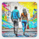 Pegatina Cuadrada Pareja sosteniendo manos Graffiti urbano