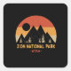 Diseño retro del Parque Nacional Zion con montañas, árboles, paisaje y naturaleza.