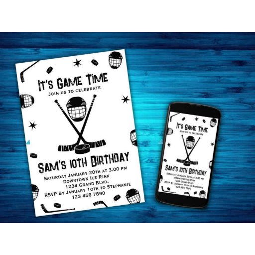 El diseño de esta fiesta de cumpleaños de hockey sobre hielo es parte de un conjunto de accesorios de fiesta de cumpleaños a juego. Tu hijo de cumpleaños disfrutará cada momento de su día especial. Este diseño presenta un patrón blanco y negro de equipo de hockey, junto con fuentes fáciles de leer, y mucho espacio para añadir toda su información única. Para cualquier necesidad de diseño especial, no dude en ponerse en contacto con el diseñador enviando un correo electrónico a choosehappystudio@yahoo.com