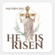 Pegatina Cuadrada Pascua El se eleva Jesucristo cruz de madera