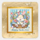Pegatina Cuadrada Pascua feliz con conejo, huevos y flores