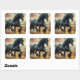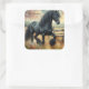 Pegatina Cuadrada Pastel de Caballo Negro Fresian Valla Rústica