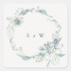 Pegatina Cuadrada Pastel Dusky Blue Floral Wreath Boda Monograma