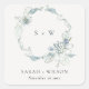 Pegatina Cuadrada Pastel Dusky Blue Floral Wreath Boda Monograma