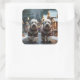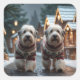 Pegatina Cuadrada Pastores Ingleses Antiguos Navidad Nieve Fiesta