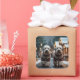 Este diseño festivo captura el espíritu alegre de la temporada navideña, con perros adorables. Arropados en un invierno mágico, completo con un árbol de Navidad decorado y regalos bellamente envueltos. Los copos de nieve caen suavemente, añadiendo un toque mágico a la escena, mientras que los colores vibrantes de las decoraciones navideñas crean una atmósfera cálida y alegre.