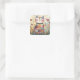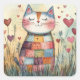 Patchwork de color de agua Valentine Cat en un campo de flores de corazón.