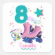 Pegatina Cuadrada Patinaje retro Chica de cumpleaños