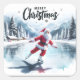 Pegatina Cuadrada Patinaje sobre hielo en el invierno de Wonderland