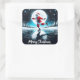 Pegatina Cuadrada Patinaje sobre hielo Santa bajo la luna