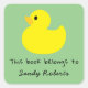 Pegatina Cuadrada Pato amarillo - este libro pertenece a
