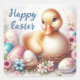 Pegatina Cuadrada Pato de Pascua, huevos y flores