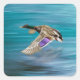 Bonita foto de un pato mallard atrapado en medio del vuelo.