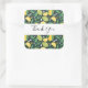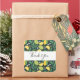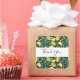 Gracias pegatinas con un lindo patrón de limones amarillos y fruta de cal verde con tallos de hojas sobre un fondo verde oscuro.