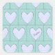 Pegatina de patchwork del corazón aplicativo verde con nombre en gris.