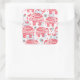 Pegatina Cuadrada Patrón de elefantes étnicos rojos