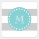 Pegatina Cuadrada Patrón de franjas blancas grises, monograma Verde
