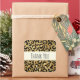 Gracias pegatinas con un diseño elegante. Zonas exóticas de leopardo negro sobre un fondo dorado. Estilo salvaje pero elegante. Un marco rectangular de color crema con un Relieve metalizado de oro falso bordeado por encima con agradecimientos escritos en su interior.