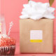 Pegatina Cuadrada Patrón de línea de cheurón rosa y amarillo persona