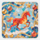 Pegatina Cuadrada Patrón de Navidades de Caballos Rojos Fiery de Año