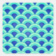 Pegatina Cuadrada Patrón de ondas Art Deco - turquesa y cobalto