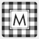 Pegatina Cuadrada Patrón de tracción de Gingham blanco y negro monog
