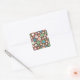 Esta vibrante impresión floral parece un sketch moderno. Los colores son marrón, rosa, azul, naranja, verde, blanco.