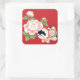 Pegatina Cuadrada Patrón japonés de kimono para perros peonis y leon