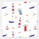 Esta pequeña huella náutica es ideal para las fiestas de cumpleaños, los eventos náuticos y sólo para los amantes de la playa y del barco. Incluye veleros, faros, casas de playa, gaviotas y más.