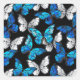 Pegatina Cuadrada Patrón oscuro sin foco con mariposas azules morfo