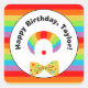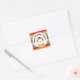 Pegatina Cuadrada Payaso con peluca arcoiris fiesta de cumpleaños pe