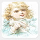 La niña más bella, rizos dorados y un delicado vestido azul, sosteniendo suavemente una paloma blanca en sus brazos, una imagen vintage que es realmente difícil de resistir.