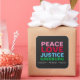 Nuestros Pegatinas de Peace Love Justice GINSBURG Square son perfectos para su paz y justicia o para los correos de la Campaña 2020. Un homenaje a la Honorable Justicia Ruth Bader Ginsburg "el célebre RBG", mientras envía un simple mensaje: Peace Love Justice GINSBURG. Diseño limpio y moderno con texto en rosa, rojo, azul y verde unido con fondo negro. Disponible en 2 tamaños de pegatina. Precio por la hoja con descuentos por volumen disponibles.