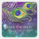 Pegatina Cuadrada Peacock Feather Boda Jeweld Feathers Bokeh