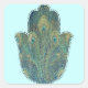 El Hamsa (también conocido como Khamsa) es un amuleto en forma de mano utilizado para la protección tanto por los judíos como por los musulmanes. La pluma de pavo real es también un símbolo de protección. Su nombre proviene de una raíz semita y literalmente significa "cinco". Derechos de autor de Hamsa Cardgallery