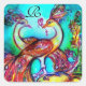 Pegatina Cuadrada PEACOCKS EN AMOR MONOGRAMA azul turquesa rojo verd