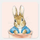 Pegatina Cuadrada Pedro el conejo sentado en una olla