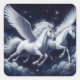 Pegatina Cuadrada Pegasus gemelo contra el cielo azul oscuro