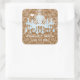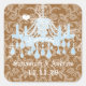 Pegatina Cuadrada Pegatinas de la lámpara de araña de Damasco azul y