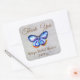 Hermosa mariposa azul acuarela y fondo de tela, elegantes Pegatinas cuadrados para ducha de novia