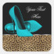 Pegatina Cuadrada Pegatinas de leopardo de los zapatos de tacón azul